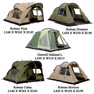 Les grandes tentes varient en superficie de 6,4 m² à 13,3 m². Elles peuvent être à une ou deux chambres et équipées de 1 à 3 lits de camping avec matelas.